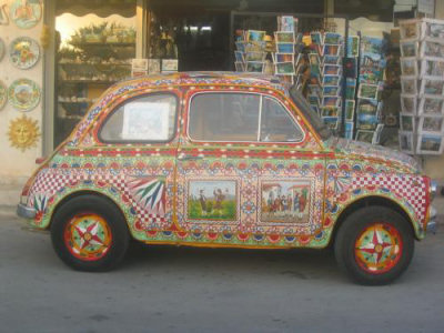 Il posto è Selinunte, potete ammirare questo moderno carretto ogni estate davanti l’enoteca, all’ingresso del paese!