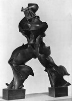 L’immagine di Giancarlo è speculare ma somigliante alla composizione boccioniana, può significare che quando s’indaga nella stessa direzione, tra la fluidità dei corpi e la stasi della loro rappresentazione, tra impulsi vitalistici e necessità di riposo, di sosta, qualunque sovrastruttura concettuale ci sia dietro, si arrivano a toccare corde simili, simili fughe verso la sintesi dell’astratto.