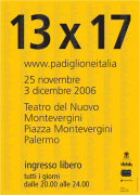 Sabato 23 ci sarà la prima festa Bauhaus Palermo: 4 feste disegnate, un progetto di Philippe Daverio & Associati in collaborazione con il Dipartimento di design della Facoltà di Architettura di Palermo. Il tema della festa è “13 x 17 – censura la Jattura!”, cioè la scaramanzia interpretata attraverso superstizioni, credenze popolari, letteratura, teatro, musica e arte ed esorcizzata in oggetti simbolo quali ad esempio ferri di cavallo, cornetti e quadrifogli. Contestualmente si inaugurerà la mostra 13 x 17.