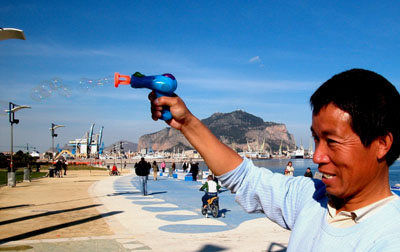 …Ah le bolle di sapone….. ricordo bambino che la mia mamma me la preparava Lei la pistola……chissà l’avrebbe potuto brevettare, forse….. Magari Oggi sarei pure ricco :):) Pur non di meno in Viale Regione Siciliana (altezza Pitrè) c’e’ proprio un’associazione “lavorativa” di extra-comunitari e mi spiego : 2, 3 passano con queste pistole a bolle di sapone; “inchiappano i vetri” e “i complici” sono costretti a pulirti il vetro…. e magari la pistola “usata” te la rifilano pure……. E bravi !!!!