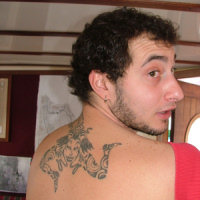 È vero, la barca ha una diversa dimensione del tempo. Dopo due notti in cabina, superi ogni indugio, la coabitazione, il rumore incessante del motore, quello della pioggia (eppure a terra avevo una lieve ansia, “e se piove?” m’ero chiesta), alla fine ti abbandoni a un ritmo diverso, smetti di pilotare l’equilibrio dei tuoi passi ti muovi in automatico, ti dici “in fondo posso vantare una vita prenatale nel liquido amniotico”. Mario, lo chef di bordo (detto fammi lustro, e ditemi se non è un’incuria meravigliosa) lavora in una minuscola cucina, il suo campo di battaglia, dove avvengono miracoli: pasta alla palina con un velo di gratin, gamberi marinati, pasta con le sarde, zuppa di lenticchie, caponessa, polpo con le patate, sarde a beccafico, e pesce azzurro in tutte le combinazioni. E siamo solo all’inizio. Filippo Lo Iacono (inciuria pastaeccarne), l’assistente di bordo, ha un vero tatuaggio in stile marinaio, la stessa trinacria che sventola sulla bandiera, “vedere, vedere” chiediamo. Decidiamo di immortalare l’opera d’arte, lui ci chiede i diritti per sfruttamento dell’immagine. Stiamo ancora aspettando che si registri.