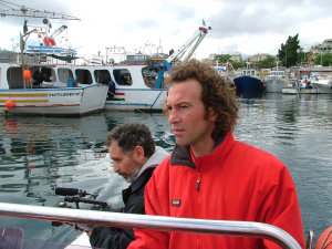Nella mattina del venerdì abbiamo deciso di andare in “perlustrazione” (avventurosa come parola, “perlustrazione”, vero?). “Sul gommone non si va coi tacchi”, m’ha detto per cominciare il capitano Nino, buttando l’occhio sul mio paio di stivali. Infatti, ve lo posso assicurare, coi tacchi si scivola. Ci trasferiamo dal Liberty al gommone e ci aggiriamo per il porto col motore a basso regime per permettere a Paolo Maselli di effettuare le sue riprese e a Pascale Colbert di disegnare, a me, coi miei tempi, di registrare, guardare da fuori la prua rompighiaccio, immaginare storie. A volte la pubblicità entra a gamba tesa perfino nell’immaginario marinaro e incrociamo un pescatore di polpi, con una barchetta battezzata Life is now. Vi ricorda qualcosa? ‘I Paoli’ come sono stati soprannominati i registi Maselli e Lapponi, dopo aver girato si chiudono nel loro studio (l’ex mensa ufficiali del Liberty) aprono il computer e cominciano incessantemente a montare il loro documentario. Tutto in tempo reale. “Prima che si raffreddino le emozioni” dice Maselli.