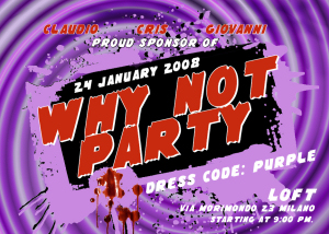 La festa si chiamava Why Not Party e veniva fornito un codice colore: porpora (un capo doveva essere di questo colore).
