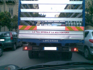 Lamberto Cudia ha fotografato una delle frasi cult dei mezzi di trasporto: «La tua invidia è la mia fortuna».