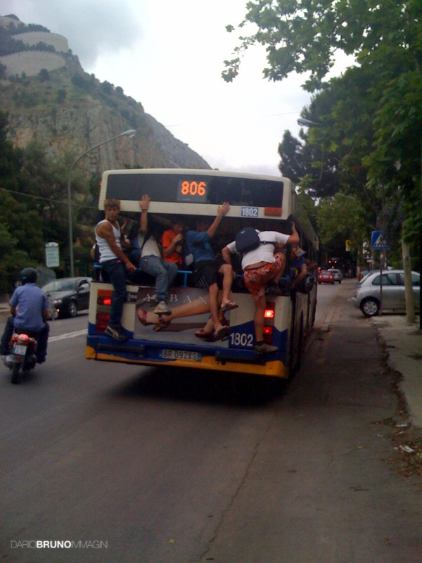 Mentre scattavo le foto loro si pavoneggiavano urlandomi “ooh semu troppo cuinnarura!”. Questo conferma che il problema è socioculturale con radici antropologiche e non certo strutturale, riferendosi al modello di bus che simpaticamente porta i palermitani al mare. Il problema è sempre quello che fa pensare la maggiorparte dei palermitani (non una nicchia) che fare il biglietto sul bus è da stupidi, mettere il casco in moto è da fessi, cercare di rispettare quel minimo di civica educazione è da uomini poco virili (non corna dure). Se Palermo potesse parlare, dimostrerebbe ODIO nei confronti dei Palermitani…