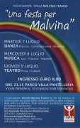 Da stasera a giovedì si svolgerà al Parco Villa Pantelleria (vicolo Pantelleria, 20) la manifestazione Una festa per Malvina intitolata a Malvina Franco (scomparsa prematuramente qualche mese fa). I proventi delle serate andranno in beneficenza a favore di alcuni reparti dell’Azienda ospedaliera “Civico e Benfratelli – Giovanni Di Cristina – Maurizio Ascoli”.