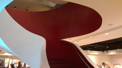 L’interno è parecchio arioso con open space che mi ha fatto pensare a molti store del genere europei piuttosto che a spazi recuperati in maniera discutibile e asfissianti come l’ex Supercinema. Complimenti a Flavio Albanese (Asa studio Albanese). Agli ultimi piani c’è una scala fantastica che richiama il barocco dipinta in rosso e bianco che porta alla terrazza che è il vero pezzo forte, con una vista mozzafiato sul chiostro e la chiesa adiacenti ma anche sul resto della città antica. Il ristorantino che vi sorgerà potrebbe diventare un posto molto gradevole da frequentare.