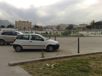 Il risultato è da brivido, una continua discarica; rifiuti, animali morti, compreso un cane flambé pestilenziale ed inguardabile che da qualche settimana decora il lato destro del parco, degrado, eternit. Oltretutto, non esistono servizi per i turisti; non esiste un negozio di artigianato, un bar decente, un punto di informazione turistica, una indicazione neanche in italiano su come si arriva al castello, nulla di nulla. Però ci sono cinque macellerie, un benzinaio (ma si può mettere un benzinaio di fronte a un monumento??) uno stigghiolaro (anche lui proprio di fronte il castello) una serie di fruttivendoli e pescivendoli “sdivacati” per tutto il marciapiede, macchine posteggiate sul marciapiede e sopra le striscie pedonali per tutto il quartiere, mancanza di arredo urbano, panchine, alberi etc. Per di più il castello è assolutamente privo di vigilanza ed oramai le moto entrano dentro il parco. Mai visto un vigile tranne una dicasi UNA volta sola, quando mi minacciò di multa perché uno dei miei figli (Karìm, tre anni!) scorazzava col suo triciclo per i sontuosi viali alberati e…insomma che diamine girare in bicicletta nel parco è proibito fosse anche un tre ruote alto 40 cm e lungo 60! Spazzini..oops Operatori ecologici….mai visti…esistono ancora? Recentemente abbiamo scosigliato ad alcuni amici di venire a Palermo per le vacanze. Perché ci vergogniamo come ladri, perché resterebbero allibiti e poi perchè ogni volta ci fanno sempre la stessa domanda; ma voi non fate niente? Non protestate? Sì…vai a spiegare che a Palermo sulla nostra protesta si fanno una risata. Credetemi, non riesco più ad