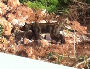 ..aggiungo…consultando le foto di Repubblica si puo’ notare (dove ancora piu’ netta e’ la sensazione che si tratti di un gatto) come sia ben visibile invece la struttura di un balcone di una casa da cui la foto e’ stata scattata.Con delle semplici misurazioni di prospettiva sul luogo si puo’ risalire immediatamente e tranquillamente alle reali dimensioni dell’animale fotografato,senza creare alcun allarmismo ed evitando di ricadere in questo gioco della pantera estivo.