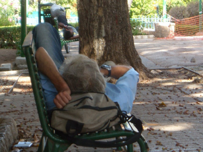 Per la verità, sono almeno in 2: se ne intravede un altro, pure sdraiato su una panchina più avanti.