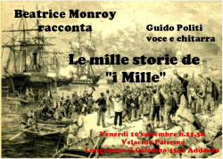 Alle 21:30 Beatrice Monroy racconterà al Velaclub Palermo (lungomare C. Colombo, 4541) Le mille storie de “i Mille”. Chitarra e voce di Guido Politi.