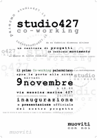 Alle 19:00 inaugurerà lo Studio427 (via Messina Marine, 427) nello spazio coworking che fu un tempo una fabbrica di gazzose.