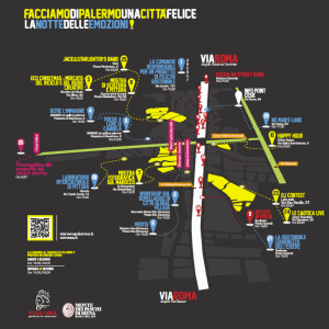 Una follia ha commentato un simpatico utente sulle pagine facebook dell’evento. È vero è una splendida e lucida follia, che parte da una rete ambientale forte: l’Associazione via Roma, che consta di oltre mille associati tra residenti e commercianti, Confcommercio (ricordate i tempi antichi in cui commercianti erano contrari alle chiusure ed alle isole pedonali?), 35 associazioni cittadine di artisti, artigiani, musicisti che riempiranno la serata (scarica il programma) di contenuti e proposte mostrando a tutti noi quanto Palermo sia una città ancora viva e vitale.