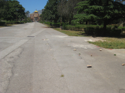 Quello ripreso dalla foto non è un campo di guerra, ma bensì la strada difronte la Palazzina cinese interdetta al traffico veicolare (!) a disposizione delle famiglie dove sono soliti portare i loro bambini per poter trascorrere il tempo libero.