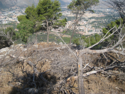 purtroppo sono gli effetti di un disastroso incendio di qualche anno fa. parliamo allora delle feste dei bangla (non sono sicuro che siano di questa nazionalità) che sgozzano agnelli proprio sul pianoro sottostante il santuario, lasciando poi teste e carcasse di animali nel bosco!? vogliamo parlare del palermitano medio (ma forse è anche un insulto alla mediocrità) che trasforma la pineta della Favorita (sempre riserva è) in una discarica ad ogni festività? e ci scandalizziamo per quattro alberi caduti a causa di un incendio (senza fare cenno al dolo)? mi sa che qua guardiamo il dito e non la luna