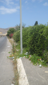 nelle foto vedo – come già detto – piante non tagliate dai privati e munnizza forse frullata fuori dai finestrini delle auto in corsa, e qualche erbaccia e fiorellini tra la strada e il marciapiede.