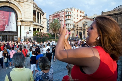 Nel pomeriggio di sabato si è svolto a piazza Politeama il flash mob Palermo vola con circa 300 partecipanti.