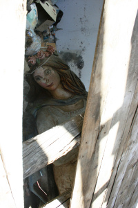 MA NON ERA MEGLIO LASCIARLA TRA I RELITTI DEI FESTINI PASSATI??? POVERA SANTUZZA!!! MENO MALE CHE FACCIO RESTAURO DI OPERE ANTICHE..PERCHè A VEDERE CERTE CAGATE DEI NUOVI “ARTISTI” VIENE IL VOLTASTOMACO!!! POI MI FA RIDERE MOLTO LA DESCRIZIONE INUTILE CHE FANNO..SECONDO ME è SOLO UNA VECCHIA STATUA DELLA SANTUZZA (GIà ORRENDA ALL’ORIGINE)IMBRUTTITA E RIDICOLIZZATA ALL’ENNESIMA POTENZA!!!