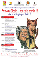 Da oggi a mercoledì 6 si svolgerà presso il Centro sperimentale di cinematografia (via P. Gili, 4; Cantieri culturali alla Zisa) la manifestazione Franco e Ciccio…non solo comici!!! dedicata a Franco Franchi e a Ciccio Ingrassia. Attorno alla mostra dove verranno esposte locandine, foto buste, manifesti, fumetti, dischi e memorabilia si svolgeranno diversi appuntamenti.