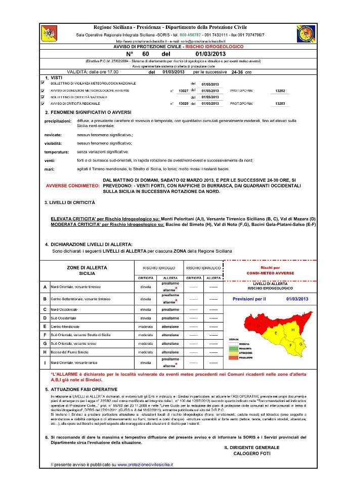 AGGIORNAMENTO: il bollettino della Protezione civile.