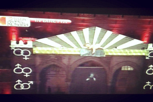 Un asterisco rosa che intende rappresentare una fetta d’umanità (e anche di cristiani) proiettato assieme ad altre immagini contro una cattedrale. Vedi che scandalo. E dire che Gesù non si scandalizzava, si scandalizzano i mercanti che pretendono di parlare in nome di Dio da più di 2.000 anni.