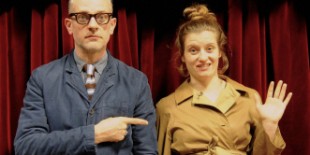 Nel teatro vivo di una città morta, un uomo e una donna, sembra che stiano presentando un libro.
