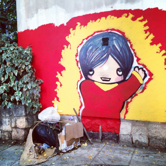Vedo che ha il kit, ma non lo usa per raccogliere la “pupu” del suo cane. Così giorno dopo giorno ci siamo trovati tutti in una montagna di merda e stavolta la colpa non è di B. Tuttavia un giorno, nonostante il fetido olezzo, la signora con il suo iPhone (manco a dirlo) resta incantata dalla mia coinquilina. Lei è Muralia, ed è davvero bella. Ha dei colori che attirano, ma onestamente mai nessuno si era soffermato prima d’ora a farle una foto. Eccetto madame. Dicono sia “arte”. Arte da strada, ma pur sempre degna del nome. Anche io però credo di esser arte.