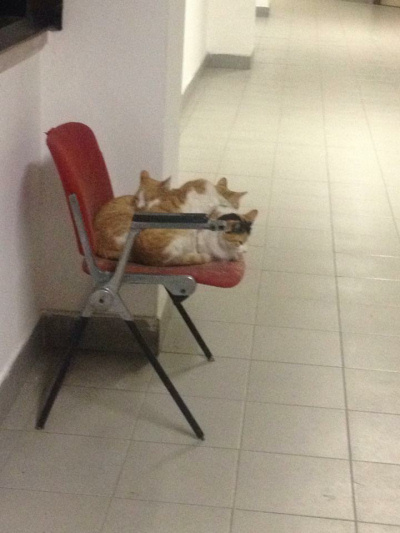 Ieri sera prima di lasciare il Velodromo Paolo Borsellino ho incontrato tre gattini tranquillamente seduti in una sedia, credo fosse quella del custode.