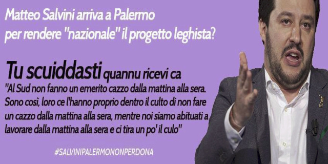 Salvini arriva domenica, pagina “Salvini a Palermo? Giornata dell’orgoglio terrone”