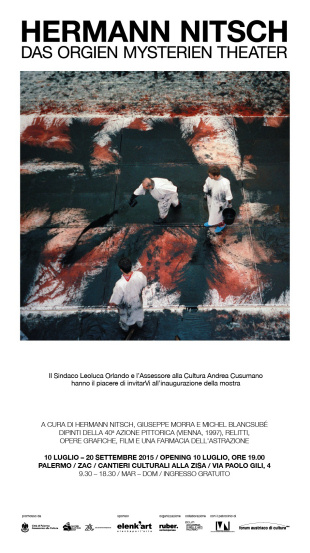 Verrà inaugurata oggi da ZAC presso i Cantieri culturali alla Zisa (via P. Gili, 4) la mostra Das Orgien Mysterien Theater a cura di Hermann Nitsch con Giuseppe Morra e Michel Blancsubé.