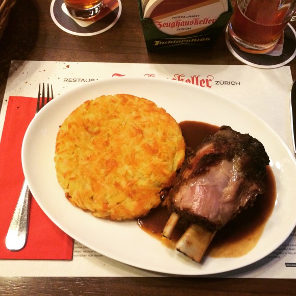 Per la cucina tipica svizzera (ad esempio il rösti, un tortino di patate grattugiate) vi suggerisco il Zeughauskeller che fu un’armeria dove sarebbe stata custodita addirittura la balestra di Guglielmo Tell; servono anche la “spada del sindaco”, paillard di baby beef che viene avvolta sulla lama di una spada, oltre che una loro birra molto buona.