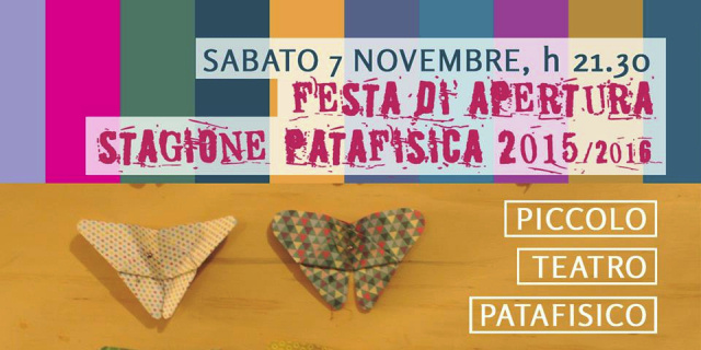 Siamo arrivati alla stagione numero sette del nostro Piccolo Teatro Patafisico. Ahinoi siamo più vecchie e non più sagge ma sempre perdutamente innamorate delle soluzioni immaginarie. D’altronde come diceva père Alfred, la semplicità non ha bisogno di essere semplice e come aggiungiamo noi «non è certo un ripiego» ma una sfida, una pratica di resistenza, una passione. È questo che è stato il Patafisico in questi anni da quando ha aperto i battenti nel 2010 in una ex stalla dietro la cattedrale dove ci si diceva «ma qui non è possibile fare un teatro» e noi pensavamo che certo il luogo ti influenza nel bene e nel male ma un teatro lo puoi fare ovunque.