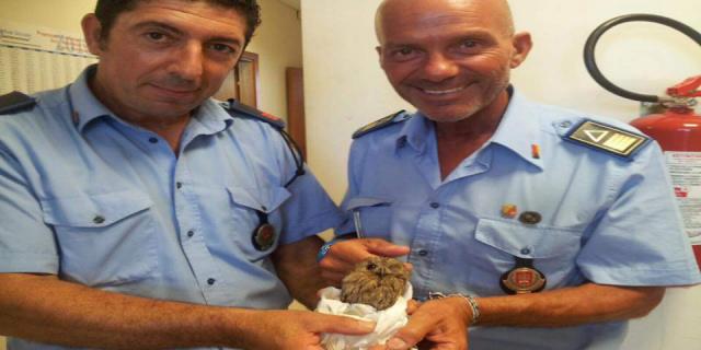 I Vigili salvano un piccolo gufo a Villa Trabia