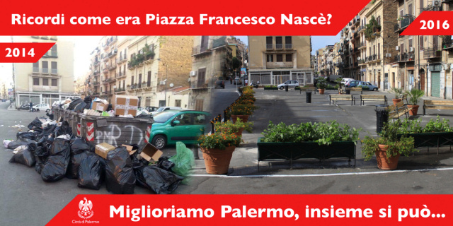 Le due campagne finora diffuse riguardano la nuova area pedonale di piazza Nascé, nei pressi dell’inizio di via Isidoro Carini, dopo avere ultimato i lavori di sgombero, pulizia e riqualificazione iniziati a fine agosto scorso.
