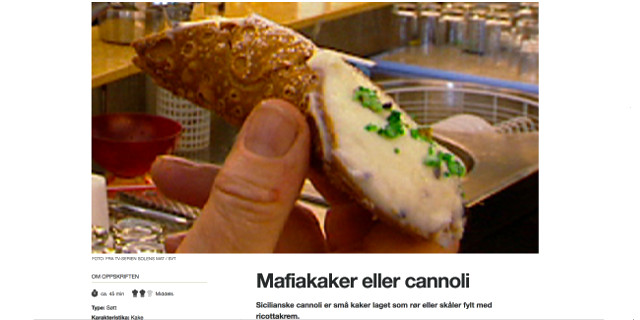 Norsk Rikskringkasting-Nrk, la tv pubblica norvegese, ha pubblicato una ricetta dei cannoli chiamandoli “Mafiakaker eller cannoli”, cioè “I cannoli, il dolce della mafia”.