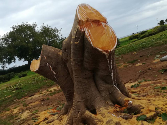 Gli operai del Settore Verde del Comune di Palermo hanno tagliato ieri un ficus elastica sul prato del Foro Italico. Sui social media si sono subito scatenate le polemiche.