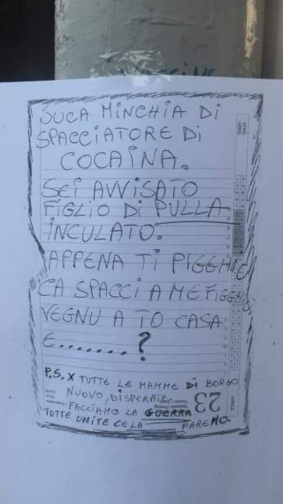 Qualche tempo fa su un palo di una villetta in una delle tante periferie della città è apparso questo cartello. È il grido di disperazione di una madre. Che trova sfogo in un gesto inutile sul piano della soluzione al problema, ma che esprime un disagio profondo, che sul piano personale comprendo per averlo vissuto, e che sul piano sociale chiede una azione collettiva di risposta.
