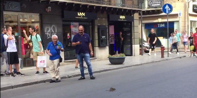 Un topo semina il panico in un negozio in via Ruggero Settimo, poi scappa per strada e viene investito da un’automobile.