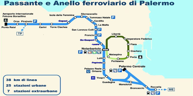 In questi giorni abbiamo assistito finalmente alla corsa del primo treno sul Passante ferroviario, avvenuta giorno 11 agosto scorso, come preannunciato con largo anticipo dalla pagina Facebook Palermo in Progress. Si tratta, per il momento, di convogli destinati alle verifiche tecniche, mentre l’apertura all’esercizio viaggiatori è prevista per il prossimo 9 settembre. Da quel giorno i cittadini potranno finalmente usufruire di un servizio destinato a cambiare la mobilità dell’intera area metropolitana, grazie ad un totale di 21 stazioni. In realtà, la maggior parte di esse, destinate esclusivamente alla sosta dei treni, rientra nella categoria delle “fermate”. Le stazioni vere e proprie, infatti, permettono il “movimento”, ovvero manovre fra i convogli, come le precedenze: ciò che avviene quando un treno si ferma e si fa sorpassare da un altro nella stessa direzione. Utilizzeremo comunque per tutte il termine “stazione” come, d’altronde, è in uso fare anche la stessa RFI.