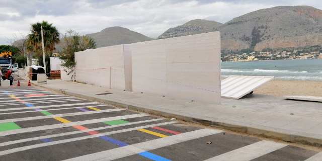 A Mondello una zona della spiaggia è stata concessa all’Esercito e si sta costruendo una recinzione di legno di colore grigio che impedisce in quel tratto la vista del mare. Sui social si è scatenata la protesta.