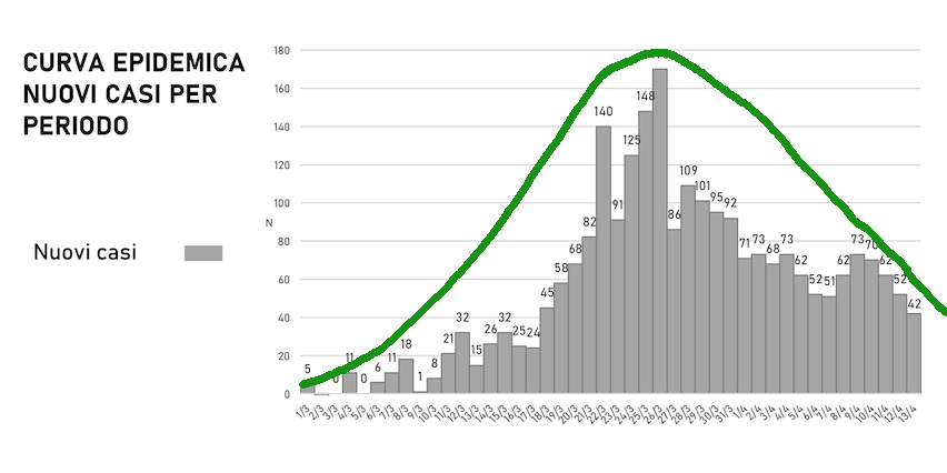 AGGIORNAMENTO del 14 aprile: +43 e totale 2051, bene così per scendere sotto 40 al giorno.