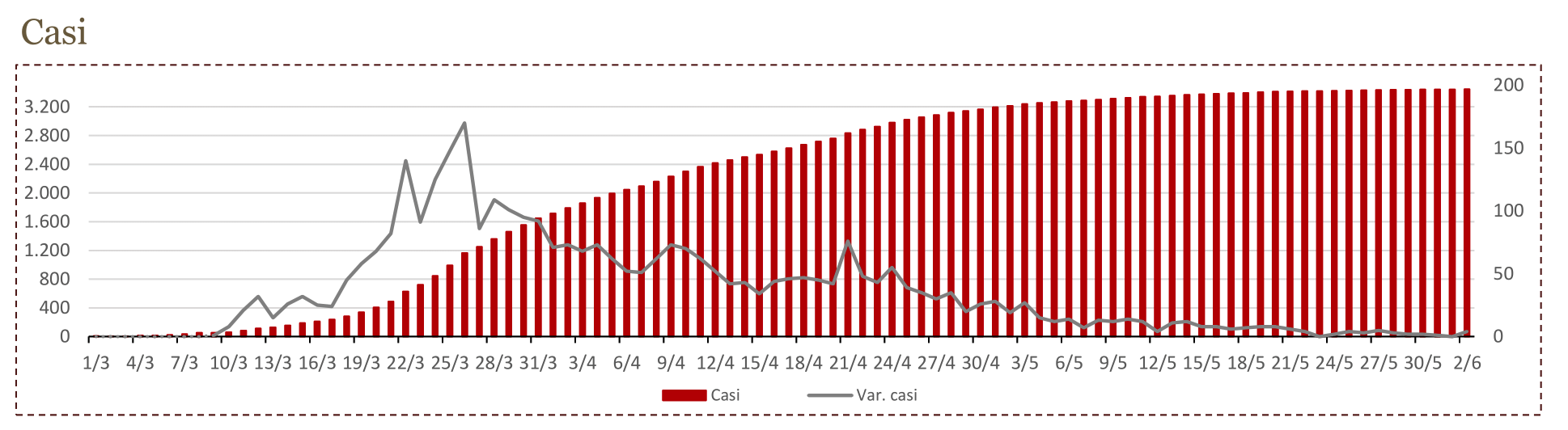 La previsione che facevamo con la prof. Mascellaro seguiva una curva di Gompertz (in rosso) che saturava a 3500 casi. Il contagio zero è arrivato per la prima volta a 3421 casi, con i punti che effettivamente hanno seguito perfettamente la curva logistica, confermando la bontà di quella previsione che avevamo sostanzialmente avanzato, seppure in una forchetta, il 23 marzo scorso.