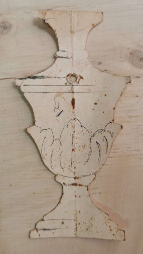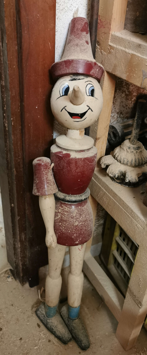 L’arte del riciclo oggi così di moda, non avrebbe potuto insegnare niente a questi professionisti del sogno in legno. Ogni disegno è realizzato su carta raccolta da altri ambiti della vita: il retro di un manifesto, un foglio strappato da un quaderno a quadretti di un bambino, un cartoncino da imballaggio, una velina sottratta da una confezione di tessuti. In esso troviamo ancora oggi tronchi di legno fermi lì da una generazione, ciocchi di faggio o toulipier, un antico Pinocchio, basi per lumi, parti di una vara in costruzione…