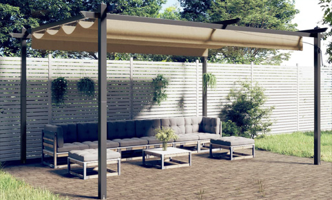 FAVI.it, Pergola da Giardino con Tetto Retrattile 4×3 m Tortora